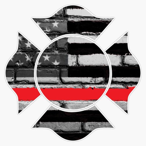Generic Firefighter Maltese Cross - Red Line Window Bumper Sticker Decal 5""