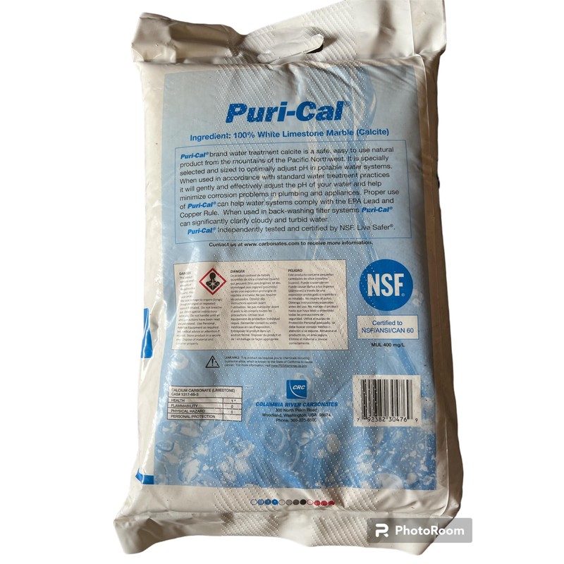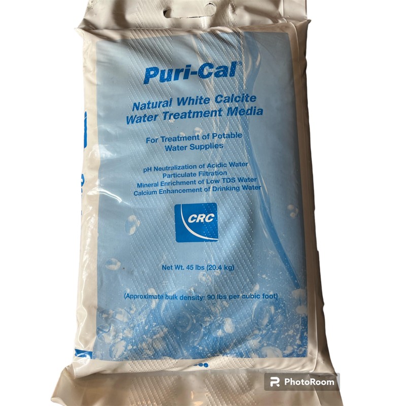andbull;1/2 cubic foot of Calcite pH filter media made from naturally occurring calcium carbonate andbull;Slow reaction rate allows for controlled pH correction andbull;Requires 8 GPM per sq. foot of tank area for back washing and 6 GPM service flow rate andbull;Enough media to fill 8 x 44 tank system.see product description for additional tank sizes andbull;Media typically needs replenished annually depending on pH level, water usage, and water chemistry andbull;The bags vary occasionally. Naturally occurring media for neutralization of acidic water. Helps resolve problems with blue/green staining and pin holes in copper pipes. Amount of media required can be determined by tank size: -8x44 0.5 ftandsup3; Tank - (1 bag) -9x48 1 ftandsup3; Tank - (2 bags) -10x54 1.5 ftandsup3; Tank - (3 bags) -12x48 2 ftandsup3; Tank - (4 bags) -13x54 3 ftandsup3; Tank - (6 bags). If more than 1/2 cubic foot is needed, enter total number of 1/2 pound bags in the quantity. Example.you need 1.5 cubic feet, enter your quantity as three (see tank sizes and amount needed above).