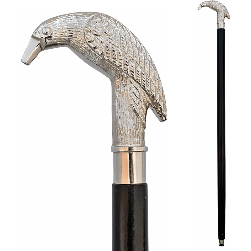 Generic Handcrafted Vintage Cane Edgar Allen Poe's Mystic Raven Gothic Walking Stick Swagger Cane, 37 Inch, Silver Brass Handle Black Sheesham Hardwood Unisex Gift (Nickel, Raven)