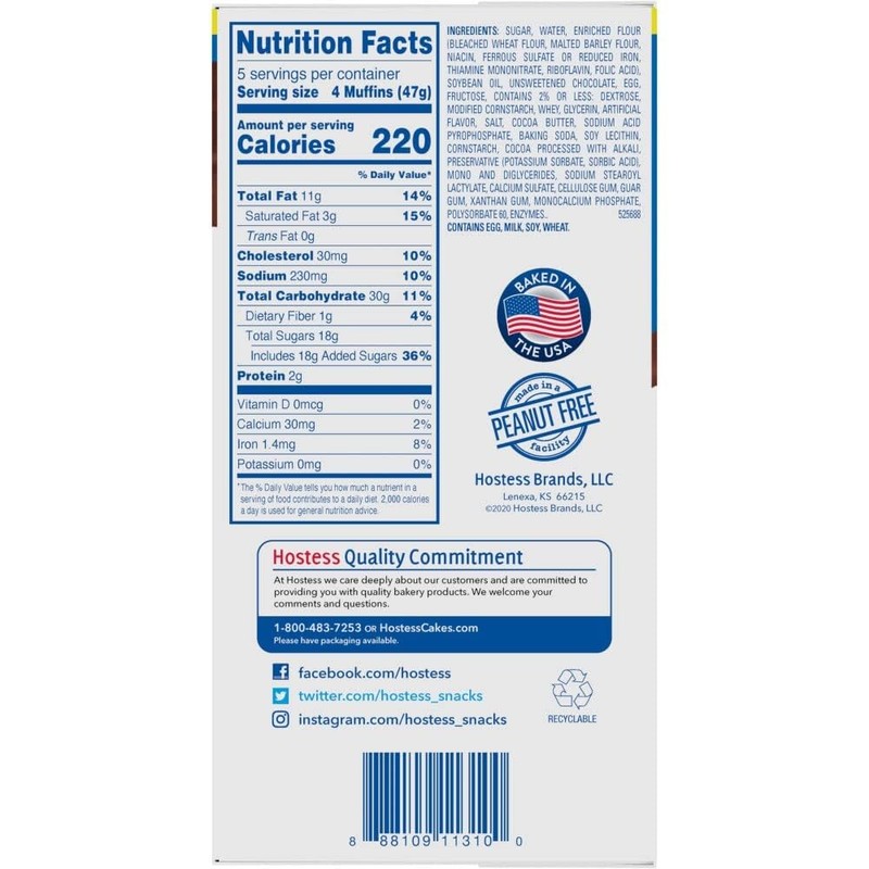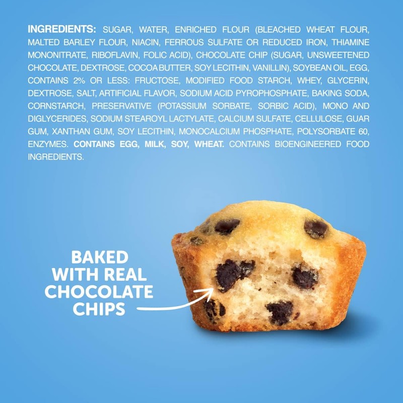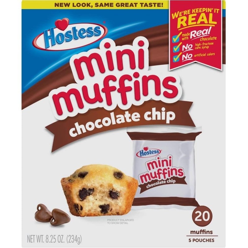 HOSTESS Mini Muffins are for mouths of all sizes. They might be mini, but these muffins are packed with mighty flavor. LIVE YOUR MOSTESS with a mouthful of chocolate chips in every bite. There's plenty to go around because it’s impossible to eat just one. Throw a pouch in your bag or purse, and put those snack cravings to rest anywhere. If you’ve got kiddos, send them off to school with Mini Muffins in their lunchbox. Includes 4 boxes Important note: Bakery items have short expiration dates, usually 3-6 weeks based on the product!