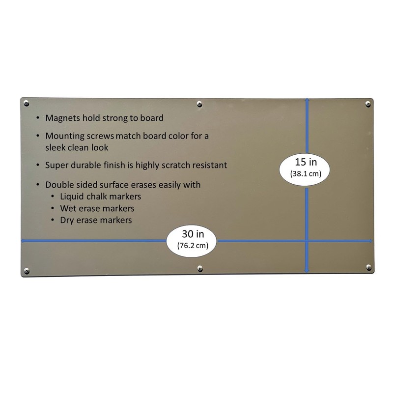 - MAGNET BOARD DIMENSIONS/WEIGHT- The strong durable metal panel measures 15 inches wide by 30 inches in length and weighs 3.8 lbs. The sleek chic design of the board measures only 1/8 inch in height when mounted with included color matched screws.