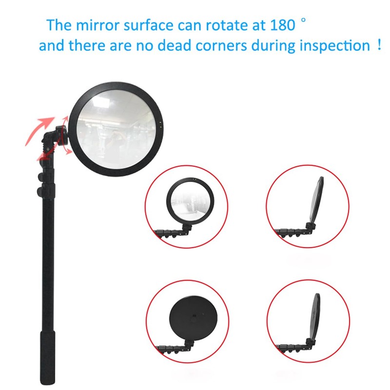 • PORTABLE INSPECTION TOOL: This compact portable car bottom inspection mirror is made of acrylic material with a retractable 16cm diameter mirror for safely inspecting the undercarriage of vehicles.