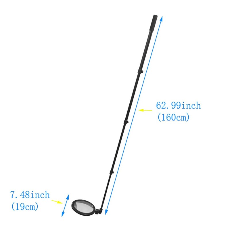 This portable car inspection mirror allows you to easily check the undercarriage of your vehicle. Crafted from durable acrylic, the 16cm diameter mirror provides a clear view to inspect hard to see areas below your car. The telescoping handle extends up to 70 inches, letting you position the magnifying glass at the perfect angle no matter how low your vehicle sits. A non-slip grip on the handle ensures steady control as you maneuver for a closer look. Lightweight yet sturdy, this inspection mirror is a must-have for mechanics and car enthusiasts alike to spot potential problems that need addressing. Inspect brake lines, exhaust systems, and look for leaks with ease. The handheld design makes it simple to use this mirror anywhere you need a magnifying view of confined spaces.