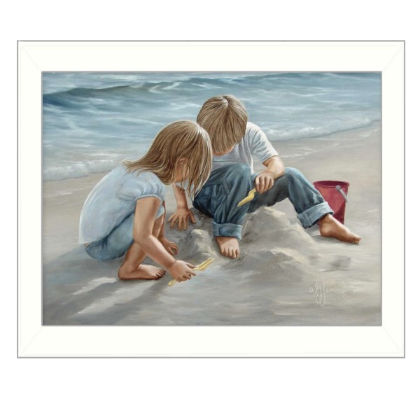 Bring some sizzle to your space with this eye-catching sand castle builders 1 white framed print wall art. This print is a visual artistic expression that allows you to decorate your space in style. Reproduced for you on paper, this hanging accent will be a trendy and fashionable way to dress your Adding this hanging wall art to make your room feel more finished and attractive. Instantly liven up your space with this art dimension that brings color and feel. Your walls. 18" H x 14" W x 1" D