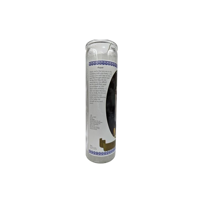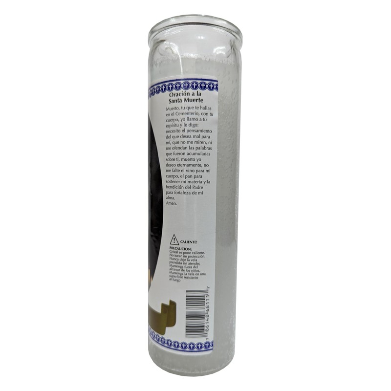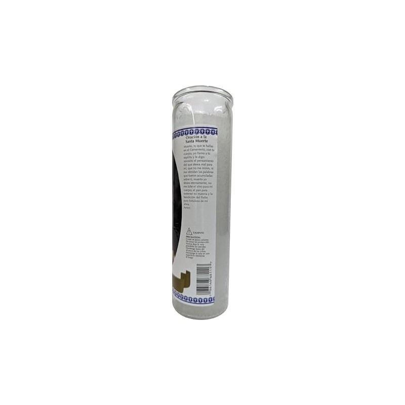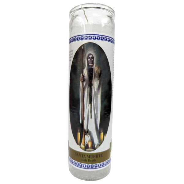 Generic Santa Muerte (Holy Death) 8"" Tall Glass Pillar, White, sd56jk