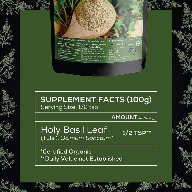 - POWERHOUSE OF VITAMIN A, C: Tulsi leaves are a powerhouse of phytonutrients, essential oils Vitamin A, and C. Vitamin A is necessary for good eyesight and immune system. It is a rich source of Vitamin C which is an essential vitamin, which can't be produced by the body. Vitamin C strengthens your body's natural defense and builds immunity.