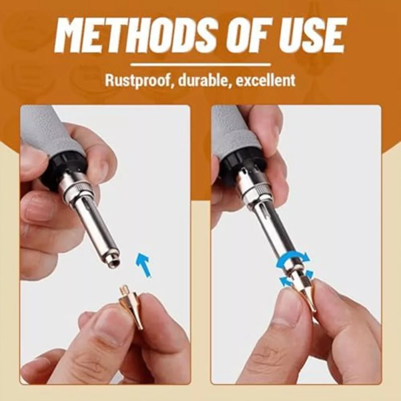 ¡Di adiós a los complicados ajustes! Instalar y reemplazar los cabezales de grabado es muy sencillo. La punta está firmemente sujeta al soldador, lo que garantiza una conexión estable durante el proceso.