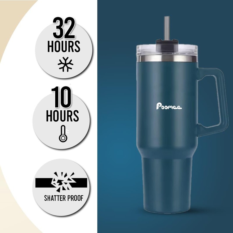 • Portable Hydration: This 40 oz (1.18 L) tumbler with handle and straw is perfect for staying hydrated on-the-go.