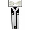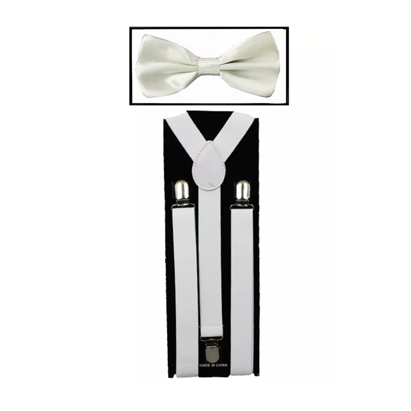 Generic White SUSPENDERS and BOW TIE COMBO SET Unisex Adjustable Suspender Bowtie