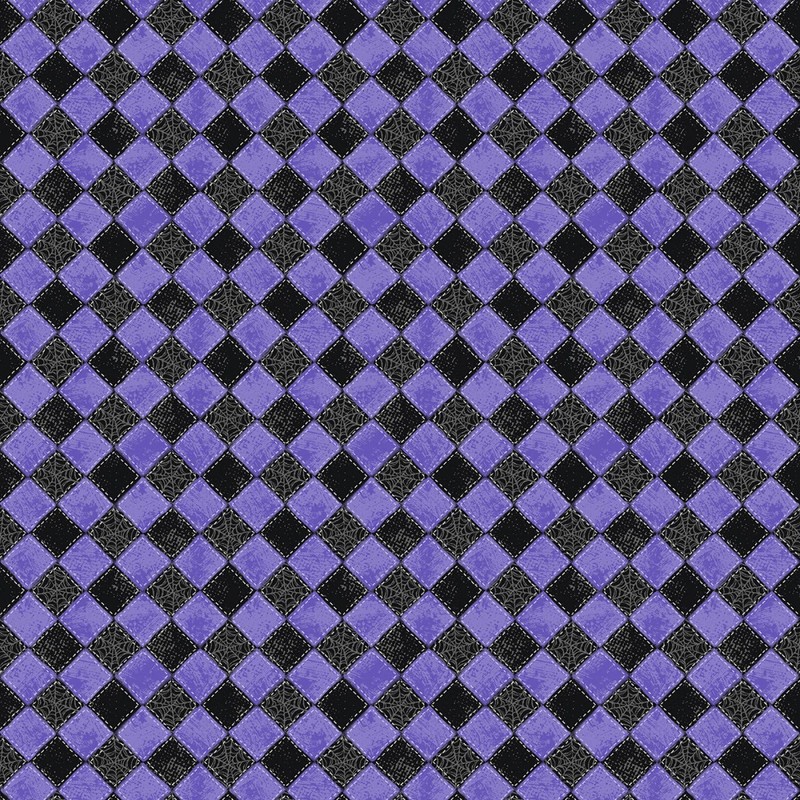 Generic Wilmington Meow-Gical Night by Michael Davis 96480 619 Purple/Black Checkered Webs Fabric, Mixed