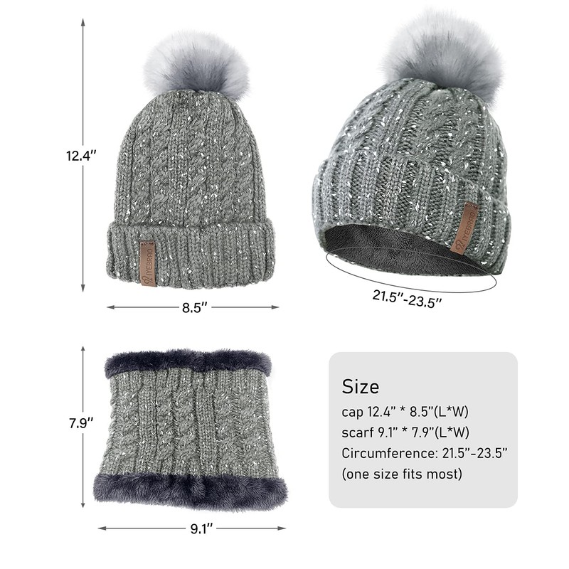 - Elastic size: elasticity hat and scarf, one size fits most, fit for head circumference: 54-60 cm (21.5-23.5 inches), can be suitable for women and teenagers, big girls. Fashionable, generous, cute hats suitable for all clothes in winter.