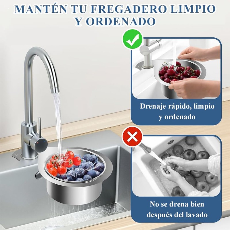 - 【Diseño eficiente de orificio antiobstrucción】El tarjas para cocina rejilla coladera tiene las características de drenaje rápido, diseño exquisito y se adapta perfectamente al borde del fregadero para garantizar que no haya espacios. El diseño de poro grande le otorga una buena capacidad de filtración y evita eficazmente que cabellos, residuos y otros residuos obstruyan el tubo de drenaje del fregadero.