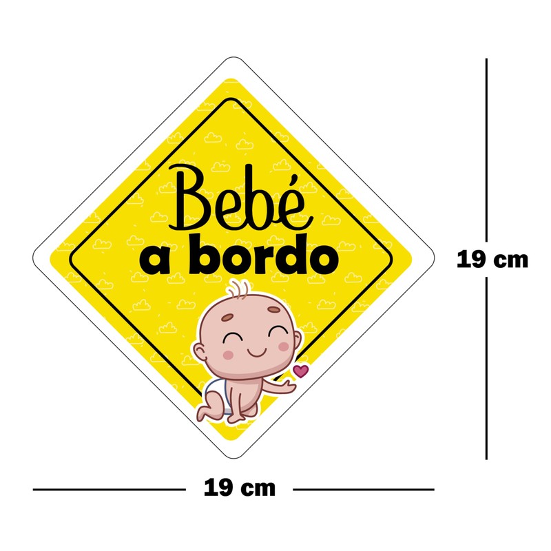 Genérico Monsterprint Señalamiento Letrero Bebé a Bordo, 19x19 cm. Impresión HD directa en estireno con tintas UV. Incluye cadena y chupón, listo para instalar.