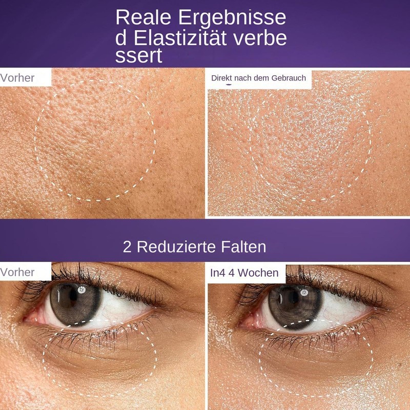 - Reduziert Falten und feine Linien:Klinisch erwiesen reduziert es 11Arten von Falten (Stirnfalten, Zornesfalten, Kr?henf?e, Tr?nens?cke, Bunny Lines, Lippenf?ltchen, Lachfalten, Marionettenfalten, Mundfalten, Kinnfalten und Halsfalten) in nur 4 Wochen.