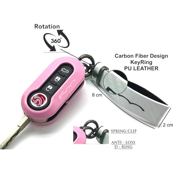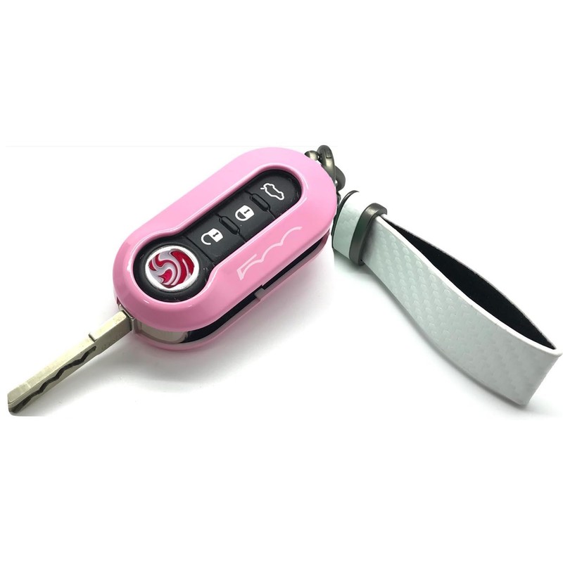 Generisch Nordecco Gl?nzendes Schlsselanh?nger-Geh?use kompatibel mit Fiat 500C 500-500L Abarth Grande Punto Brava Panda Stilo Linea (wei?er Schlsselanh?nger, rosa Hlle)