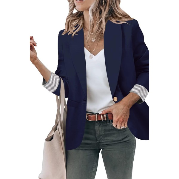 Genhoo Women's Open Front Long Sleeves Work Blazer Casual Buttons Jacket Suit Blazers Deep Blue Size X-Large