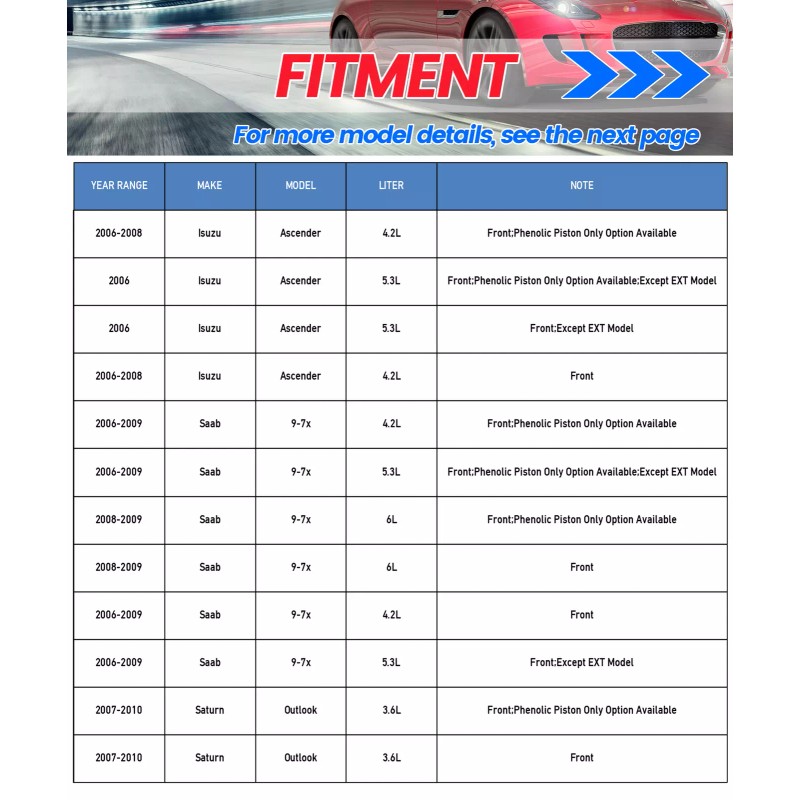 SAAB | 9-7X | 2006 - 2009 | Phenolic Piston Only Option Available |