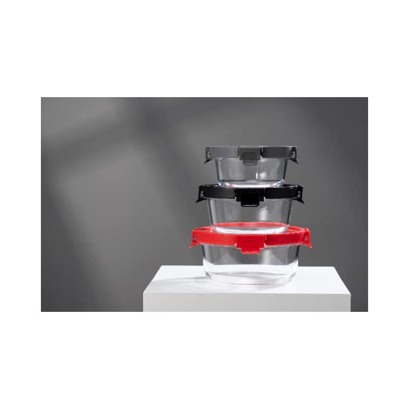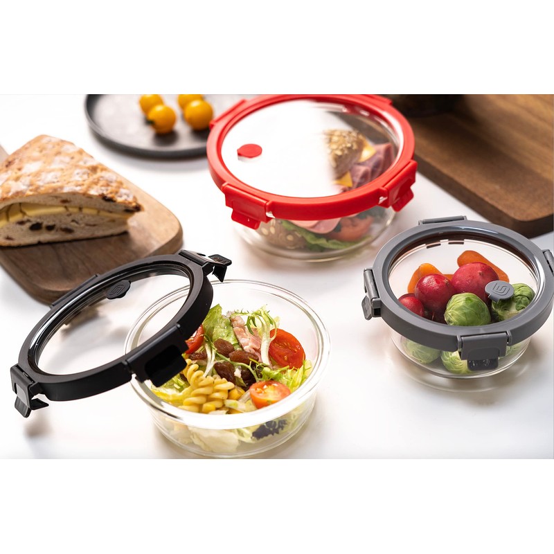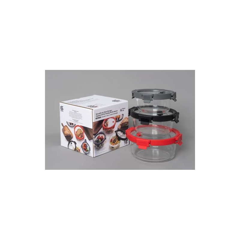 Genicook 6pc Round Glass container with lid and vent set, Microwavable, Food container