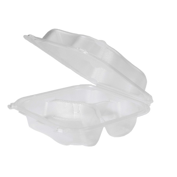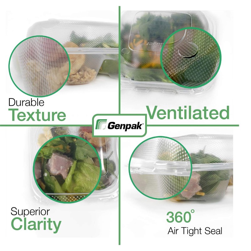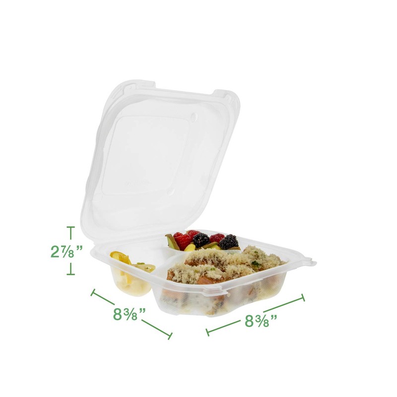 Genpak Clover Large 8" Three-Compartment Hinged Take-Out Container | Microwave Safe, BPA Free | Made in The USA | Case Count 150