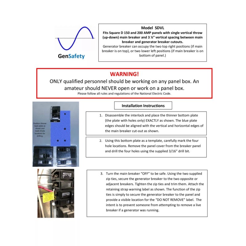 GenSafety Square D Generator Interlock Kit for 3 1/4" Spacing 150A and 200A Model SDVL