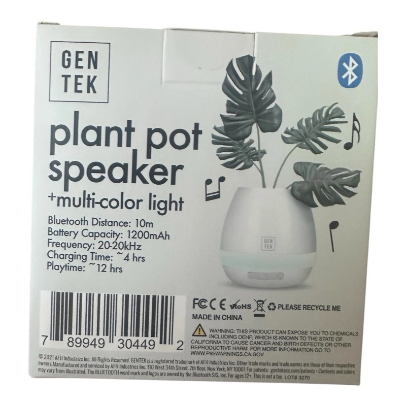Gentek Gen Tek Plant Pot Bluetooth Wireless Speaker Multicolor