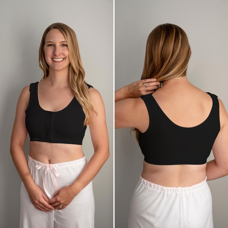 Gentle Touch Surg-Ease Bra in Black with Hook and Loop Front Closure- Post Mastectomy Recovery Bra, Made in USA | 4XL
