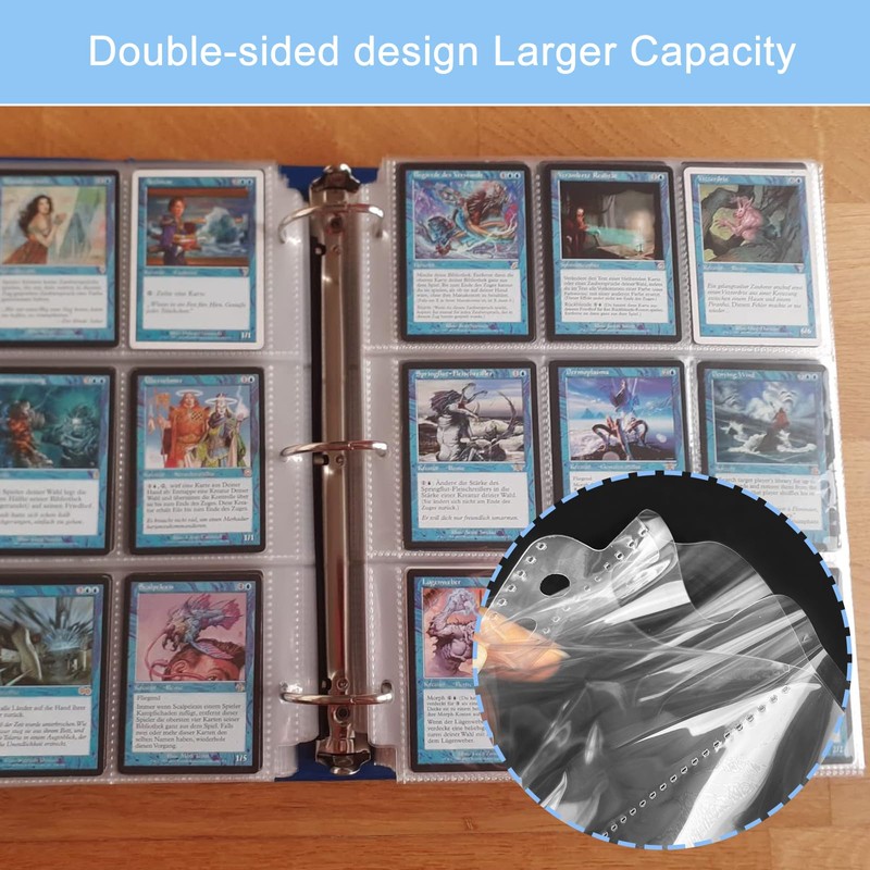 - Ample Space You will get a 20 sided double-sided trading card sleeve with 18 pockets per page, so a total of 360 pockets, allowing you to easily manage and display a large number of cards. The double-sided design ensures maximum storage space and keeps the cards neat and organised, which is very suitable for collecting and displaying your valuable cards.