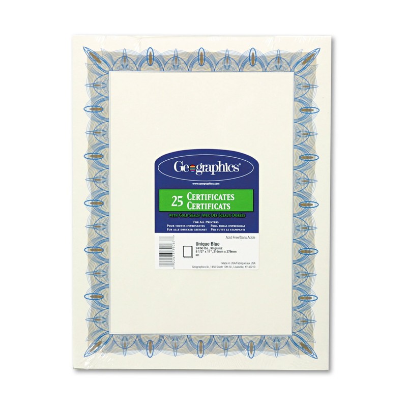 Geographics Classic Blue Certificates and Seals, 8.5 x 11 Inches, Pack of 25 (39087)