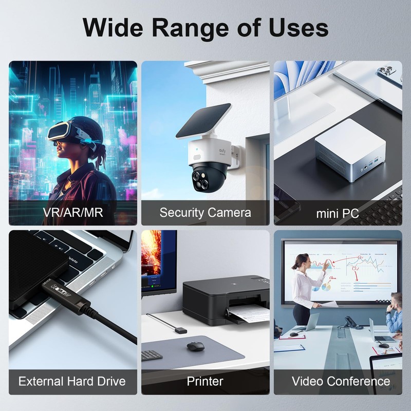 - 【Electromagnetic Interference Resistance】The fiber optic USB C cable is resistant to electromagnetic interference, making it a secure and reliable option for transmitting multiple data signals without interference.