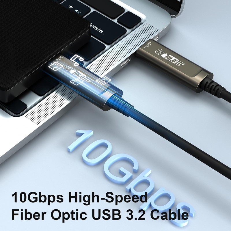 - 【Fiber Optic USB 3.2 Cable】With USB 3.2 specification, GEOHNG fiber optic USB C to USB C cable can transfer data at a high speed of 10Gbps without signal loss/stuttering/black screen. It is compatible with USB 3.0/2.0/1.1 devices and can be used on devices with a USB-C interface.