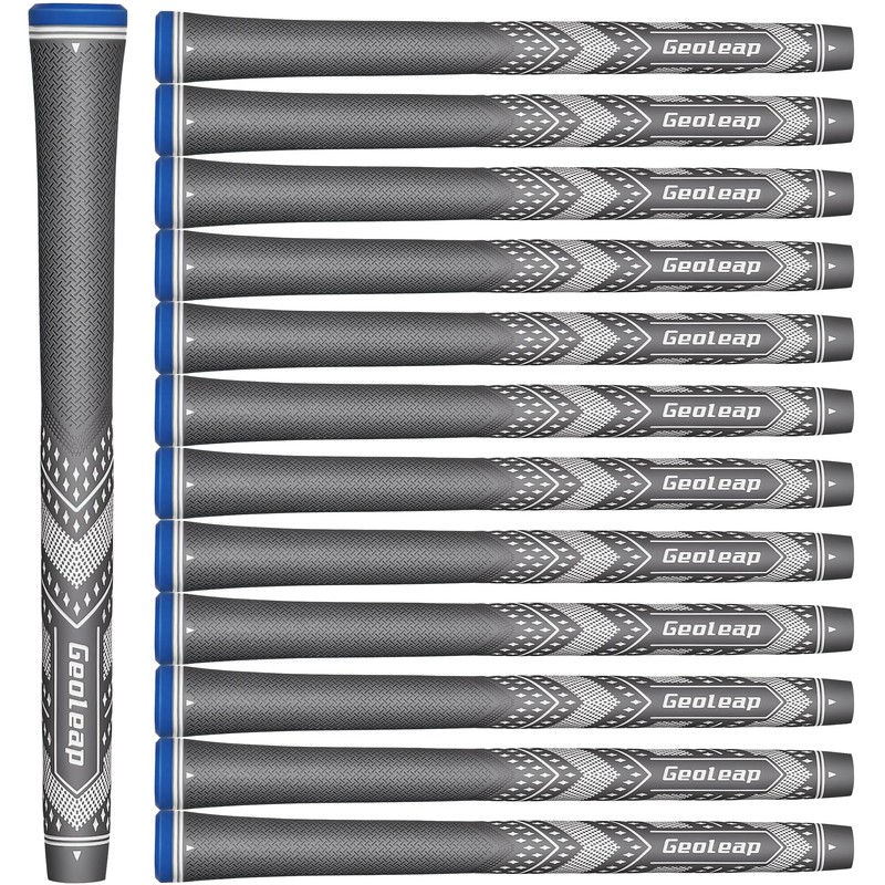 Geoleap Golf Grip Set of 13 - Soft Golf Club Grips, Reduced Taper Design, Advanced Traction and Superior Performance, Standard/Medium Size, Comfortable Clip (Grey - Standard)