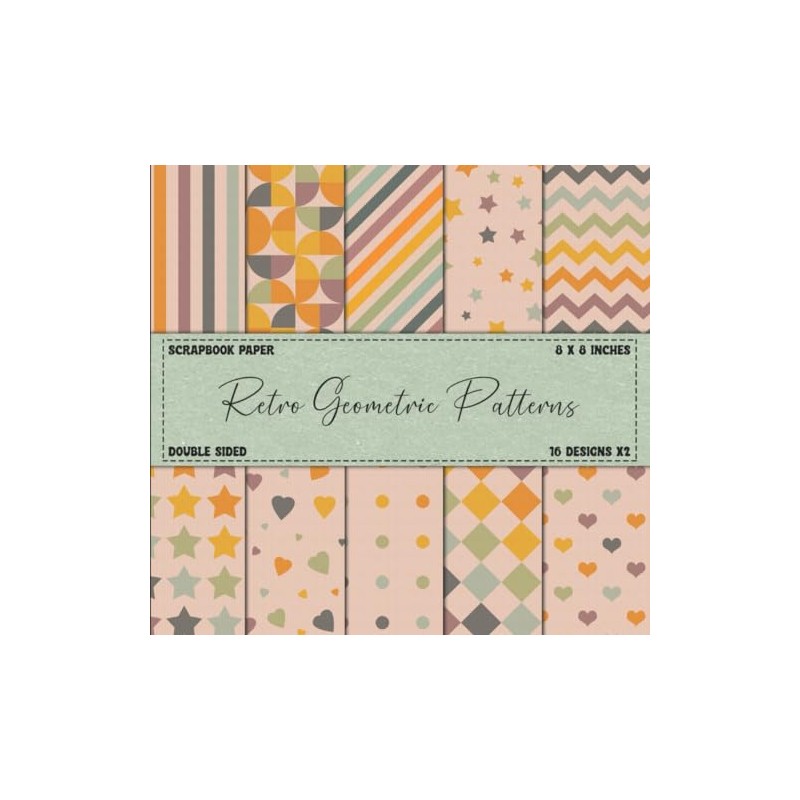 Geometric Scrapbook Paper: Retro Themed Patterns, Double Sided 8 x 8" Designs (Decorative Craft Paper)