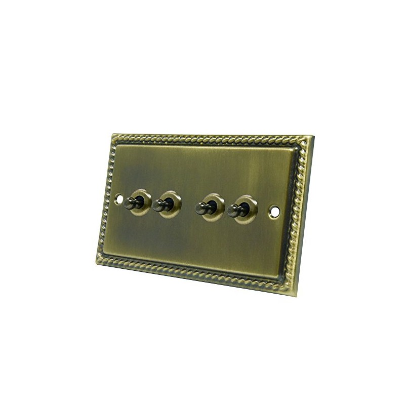 Georgian Antique Brass 4 Gang Toggle Switch - 10 Amp Quad 4-Gang 2 Way Dolly Light Switch
