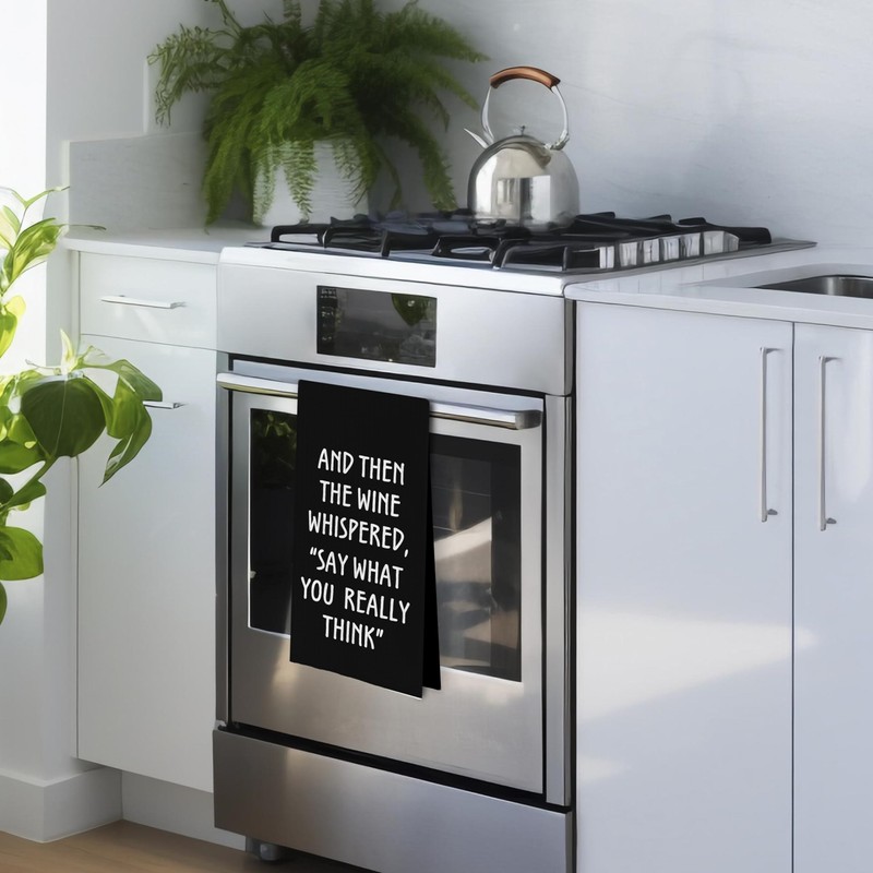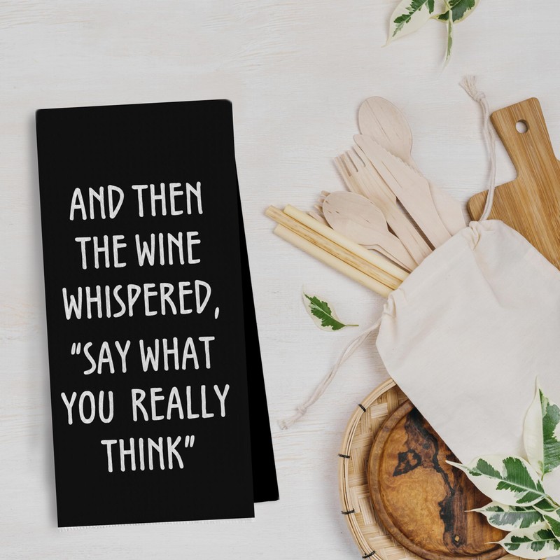 Geqtt Wine Lovers Dish Towel - Funny Wine Gifts Decorative Waffle Weave Kitchen Towels, Wine Lover Gifts for Women Tea Hand Towel, 16×24 Inches (Black)