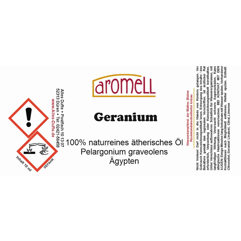 - Fragrance properties: sweet, rose-like, floral, fresh, slightly resinous, friendly, character: cleansing, refreshing, encouraging, balancing, stimulating, soothing, used plant component: leaves and flowers, gain: steam distillation, cultivation: conventional, residue-controlled cultivation
