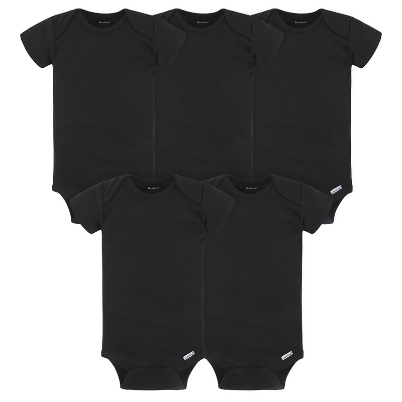 Gerber Baby Boys 5-pack Solid Onesies Bodysuits Shirt, Black, 12 Months US