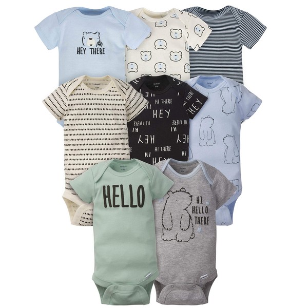 Gerber Baby Boy's 8-Pack Short Sleeve Onesies Bodysuits, Bear, Newborn