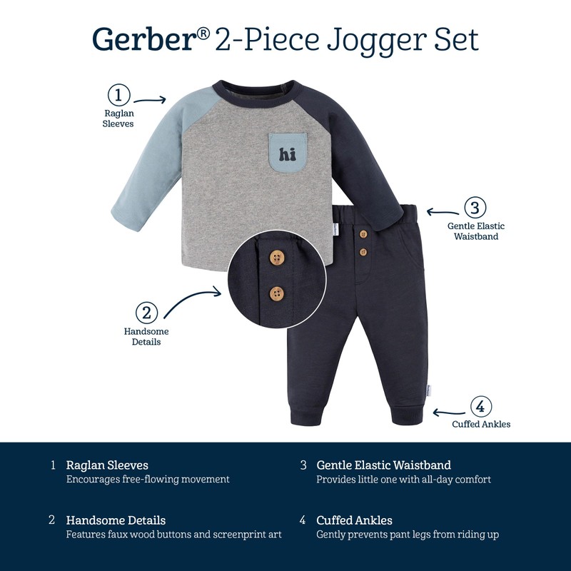 Gerber Baby Boys' Jogger Set, Happy, 12 Months