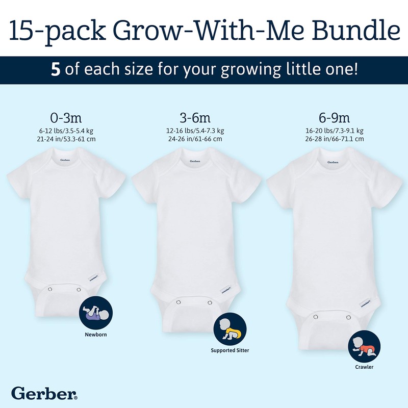 Gerber Gerber Baby 15 Piece Onesies Bodysuit Multi Size Pack, White, (0-3M, 3-6M, 6-9M)