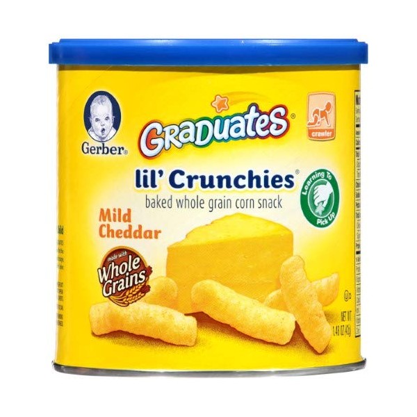 Gerber Lil Crunchies Baked Grain Snack, Mild Cheddar, Baked with Whole Grains & Non GMO Ingredients, For Crawlers 8 Months & Up, 1.48-Ounce Canister (Pack of 2)