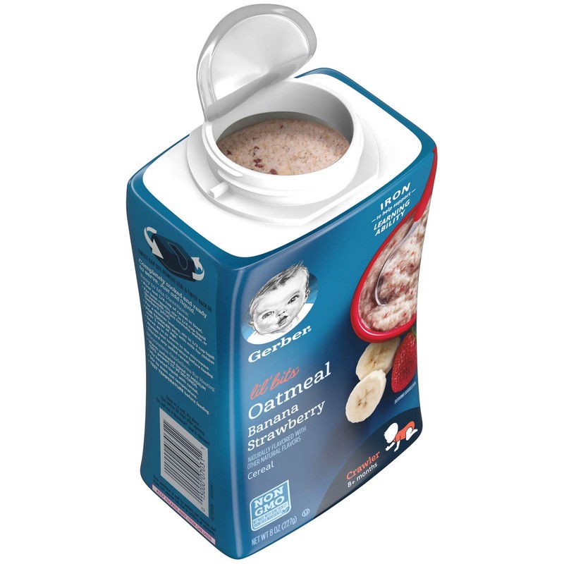 Gerber Lil' Bits Baby Cereal, Oatmeal Banana Strawberry, 8 Ounce (8 oz (Pack of 2))