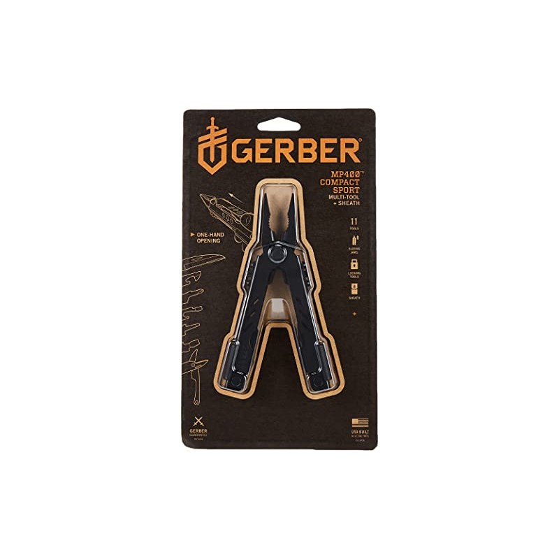 The Gerber 22-45509 Compact Sport Multi-Plier is a durable and reliable mini- toolbox that is designed to give you the functionality of a large multi-tool in a more convenient size. With a knife, pliers, Fiskars scissors, and a variety of screwdrivers, this compact multi-plier also features one-handed opening pliers, a safety system for locking tools in the open position, and a handy sheath for carrying the knife.
