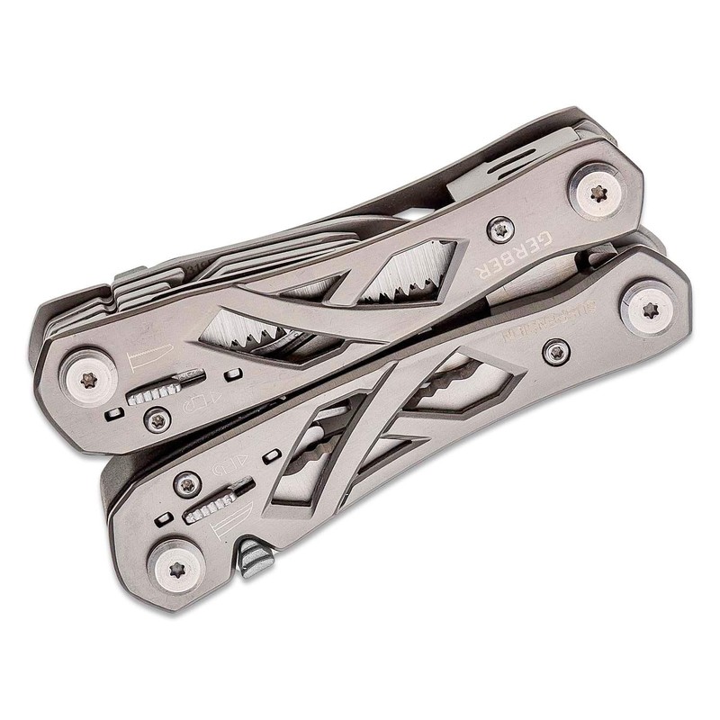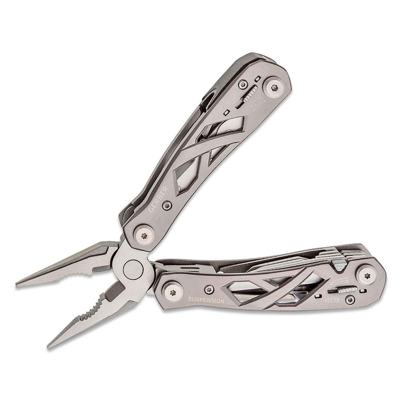 This is a classic work tool with spring-loaded pliers, our patented SAF.T. Plus component locking system, a ballistic nylon sheath, and the same structural integrity that goes into every Gerber tool. Oh sure, it's a sleek-looking son-of-a-gun. And the open configuration is something of a break-though where the industry is concerned.