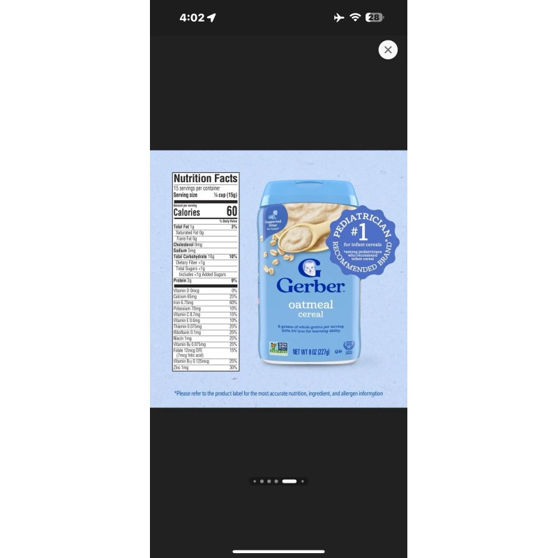 Gerber Oatmeal Single Grain Cereal for Baby 8 Oz 4pk