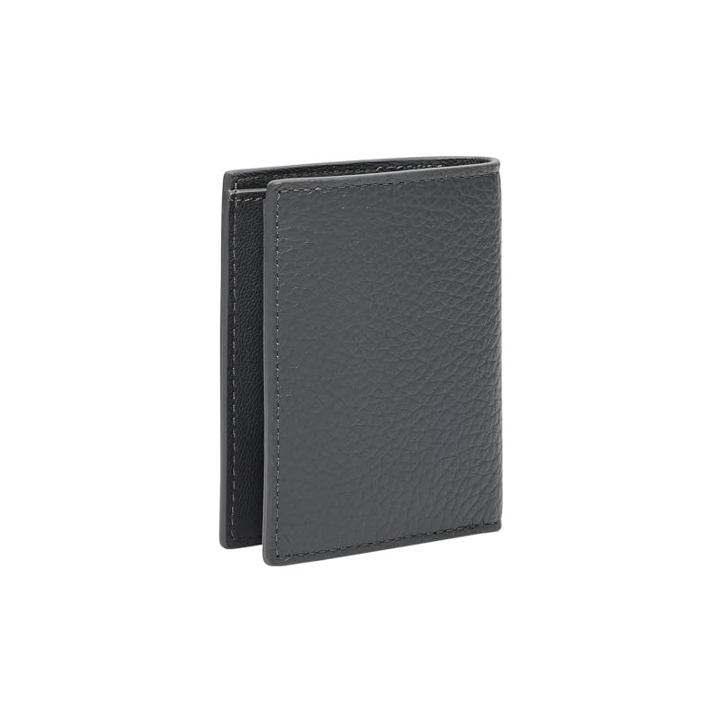 - Finely grained, solid cowhide leather flip closure, a large note compartment; 6 card slots on the front logo embossing, integrated RFID protection. Small, elegant wallet