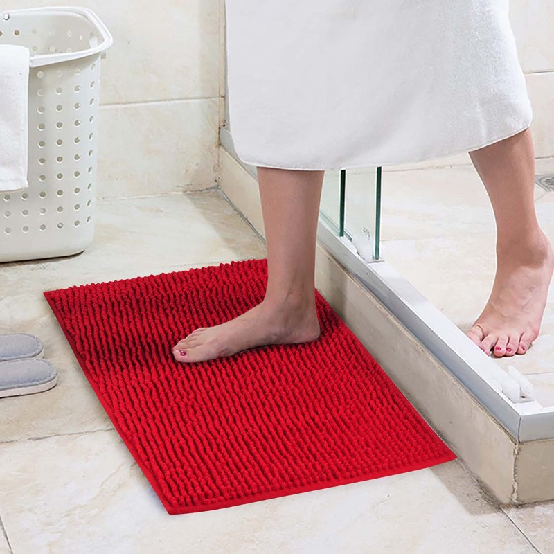 GERIINEER Non-Slip Bath Mat, Machine Washable, Bathroom Rug, Doormat, Indoor Chenille Bath Mat, Super Absorbent Water Mats with Low Profile (Red, 45 x 70 cm)