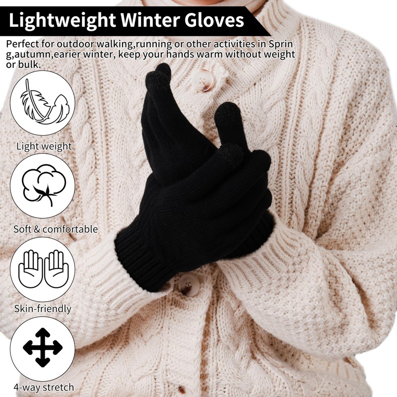 - 【COMFORT & WARMTH】: These winter gloves are made of high-quality soft knitted fabric, the warm fleece lining will keep your hands warm enough in cold weather; the elastic cuffs greatly enhance the glove's elastic and comfortable fit, making it suitable for men and women.