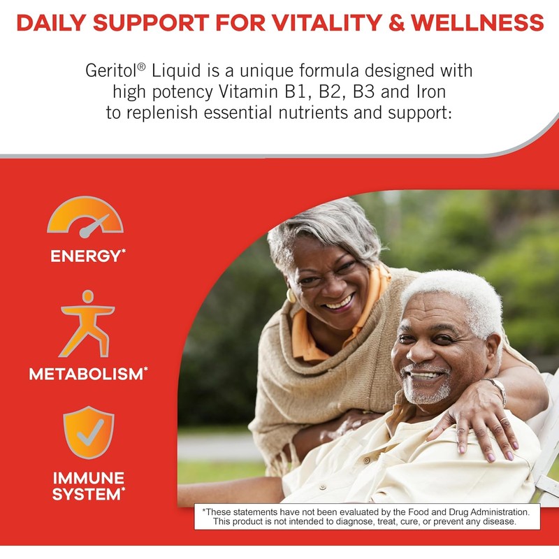 - Energy Support When You Need It: Geritol liquid iron supplement and multivitamin replenishes daily the essential vitamins and minerals that help with energy production in the body leaving you feeling energized