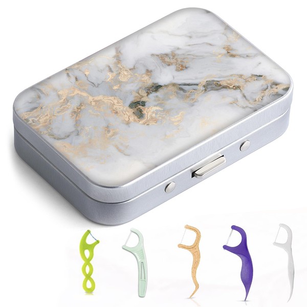 Gerkia Dental Floss Case, Portable & Lightweight, Perfect for Travel, Hotels, Dinners, Appointments. Light Grey Marble