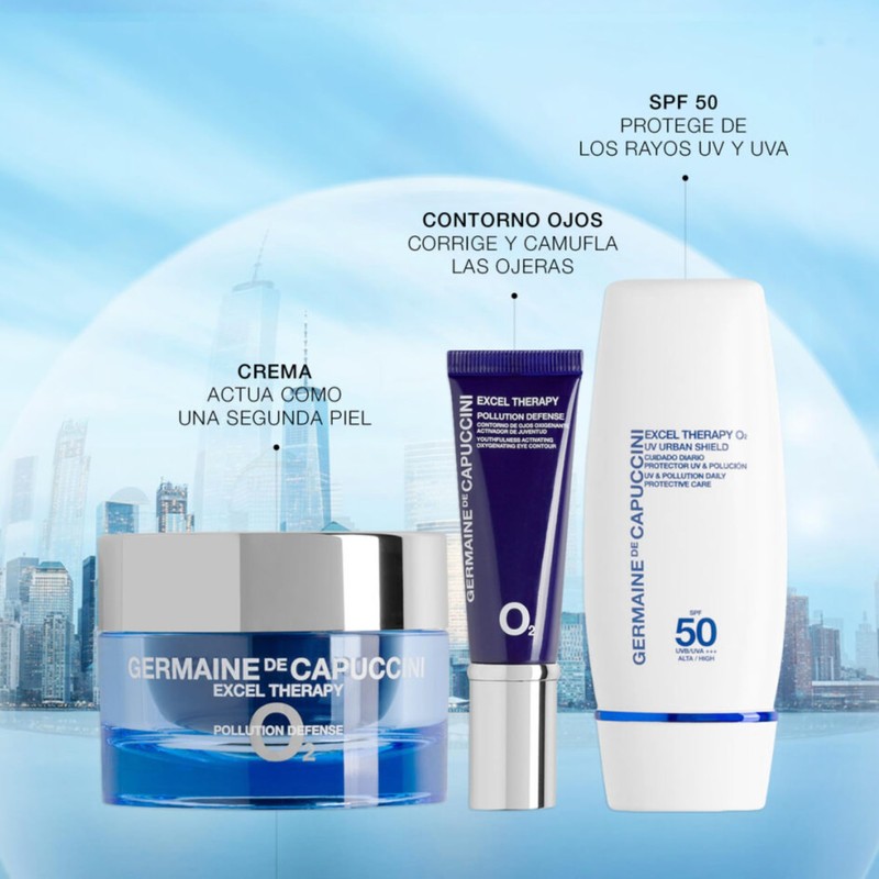• That's why Germaine de Capuccini has created a powerful weapon against the damage that pollutants cause us, providing a total solution to protect against the factors caused by urbanization that damage our skin every day